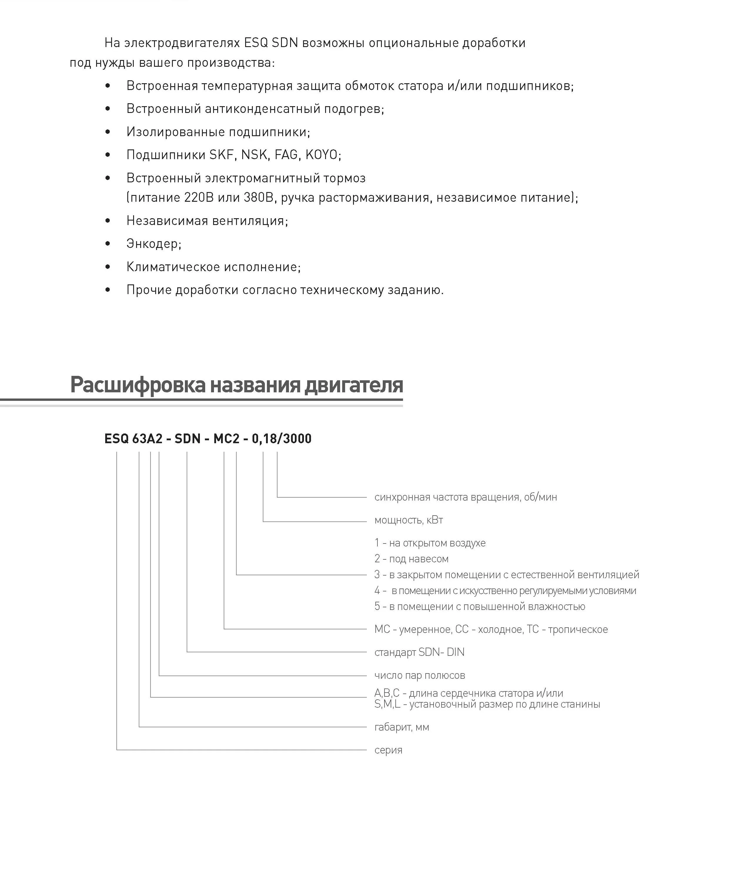Кроме стандартного исполнения, на электродвигателях ESQ DIN возможны опциональные доработки под конкретные нужды вашего производства:
